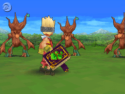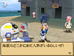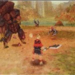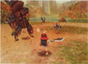 “This is an action adventure game in which players control a small ninja as he explores forest environments, fetches items for others, and fights samurai enemies. The main character uses a sword to attack and defeat enemies, and there are occasional boss battles that use life meters to measure damage inflicted. One boss character attacks with flatulence, using fans to wave green gas clouds towards the player.”