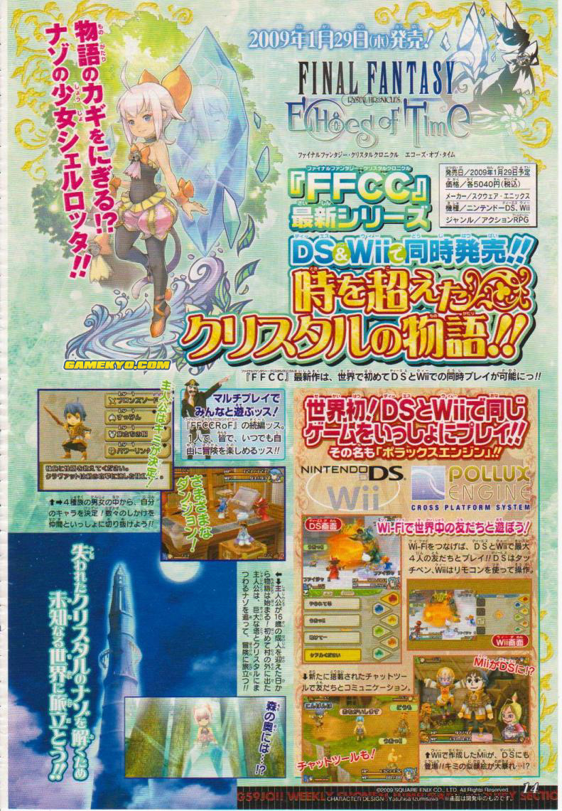Final Fantasy Crystal Chronicles: Crystal Bearers may be lost in the Square Enix vaults for now, but that isn’t stopping the company from creating original Final Fantasy titles for the Wii and DS. That’s right – Square Enix has revealed in the newest issue of Shonen Jump that Final Fantasy: Echoes of Time will be launching for the Wii/DS next year in Japan.
