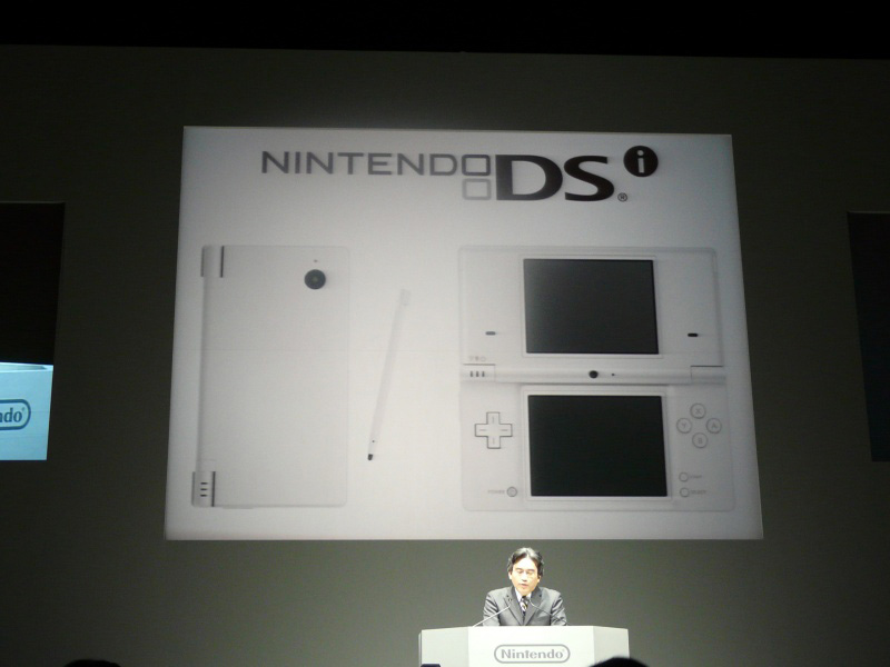 As was partially expected, Nintendo finally revealed a new DS at its annual fall conference today. Nintendo is calling the product DSi and have noted that it will act as a third platform. The GBA slot will be removed and the unit is 12% and 2.6 millimeters smaller. The screens will be increased to 3.25 inches, SD card support has been added, photos can be manipulated via the touch screen, and the playback speed of sound can be adjusted. Two touch screens have been confirmed.