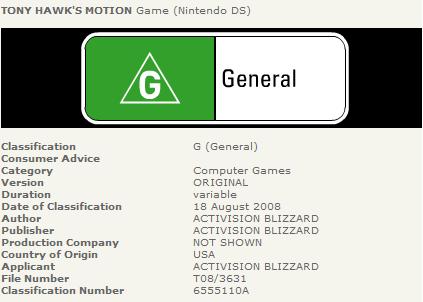Tony Hawk’s Motion rated by the OFLC