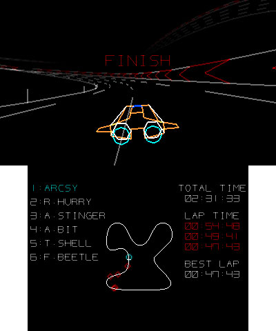 VectorRacing – Enjoy a new, high-speed racing game that recalls the video games of yore. Use one of six different machines to race across 12 courses — some easy, some insane — in four different modes. (For Nintendo 3DS / Nintendo 3DS XL)Virtual Console