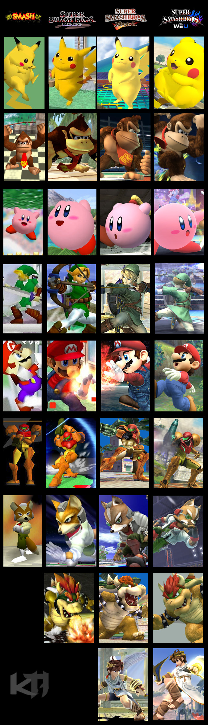 Someone has created an image comparing every character from the Smash Bros. games based on the currently-known roster of the Wii U/3DS titles. Look for it below: