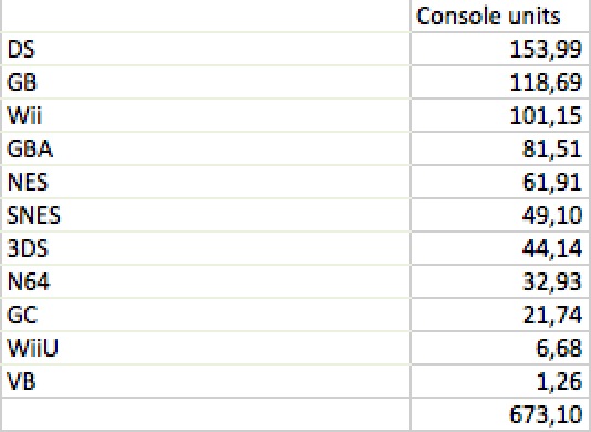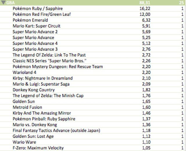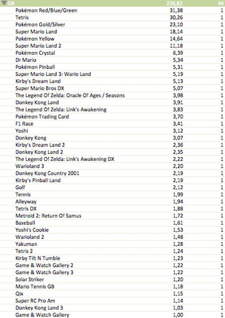 – GB contains GBC sales units as the two are considered one single platform by Nintendo