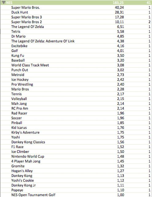 NeoGAF’s “Celine” has put together a comprehensive roundup of Nintendo data. We have hardware and software data from 1983 all the way up to 2014. Several charts have been made as well.