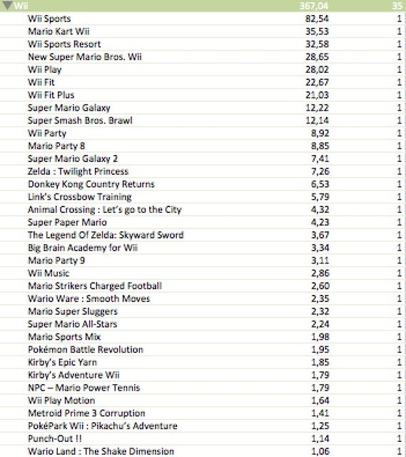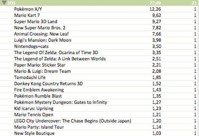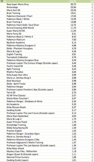 – 4 games released on DS, Wii, 3DS, Wii U their LTDs are updated as of December 2013 or March 2014 (top-selling games are updated as of March 2014)
