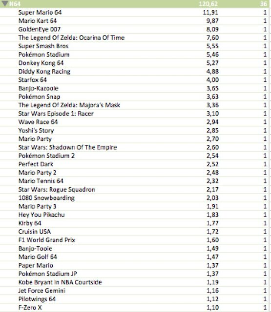 – For games released on NES, GB/C,SNES, N64, GBA, GC their LTDs are updated as of December 2006 with a few exception (GC top selling software)