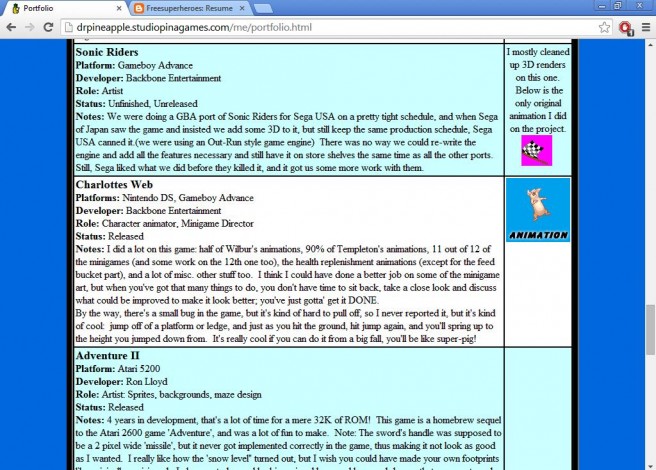 Sonic Riders was once in development for the Game Boy Advance, according to the portfolio and resumes for artists Keith Erickson’s portfolio and Arvin Bautista.