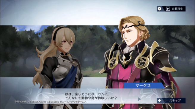 Koei Tecmo has shared another brief look at a Bond Conversation in Fire Emblem Warriors, this time between Corrin and Xander. Give it a watch: