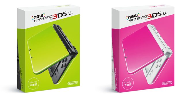 Several hours ago, Nintendo announced Lime x Black and Pink x White as new colors for the New 3DS XL in Japan. We now have the packaging shots for each – see above.