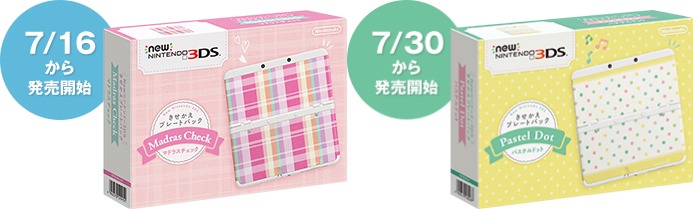 Each bundle features a white New 3DS system and AC adapter. Additionally, buyers will receive a Madras Check or Pastel Dot cover plate depending on the bundle they choose. Pricing is set at 16,990 each.