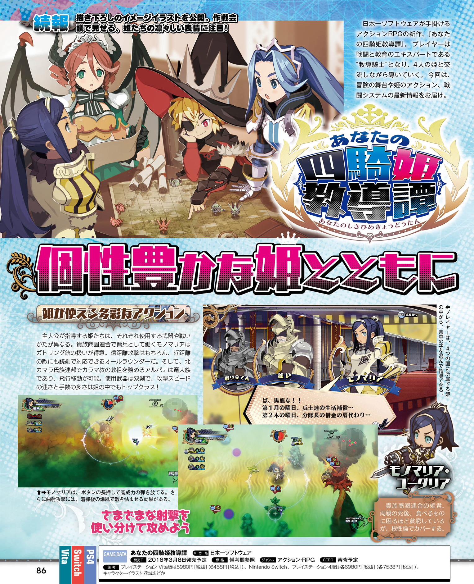 This week’s Famitsu scans are now available. Highlights include Mega Man 11, the Fire Emblem Warriors DLC, Valkyria Chronicles 4, and Your Four Knight Princess Training Story. Scans of all games are below.