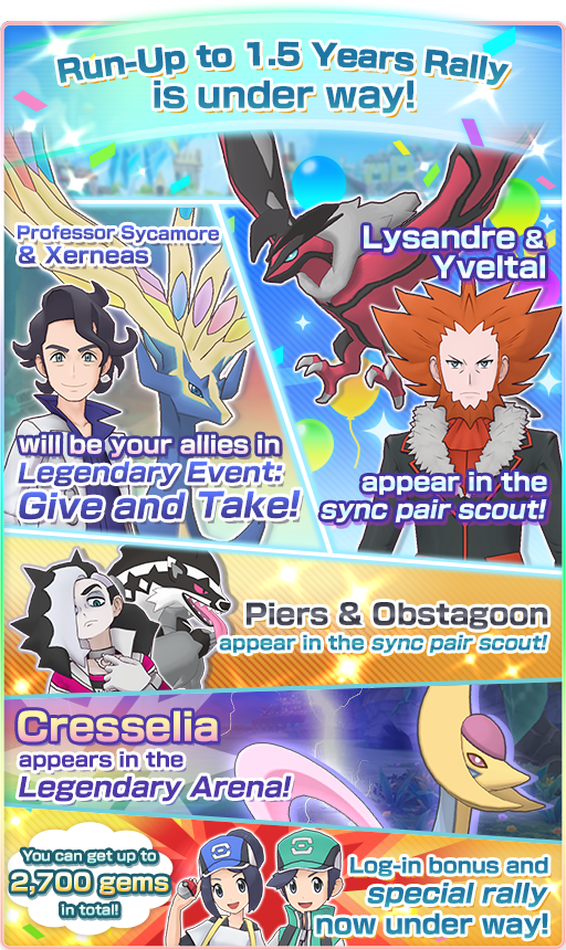 Pokemon Masters EX is leading up to its 1.5 year anniversary rally with a couple of new events. First, the Give and Take Legendary event allows players to team up with Professor Sycamore & Xerneas to take on special missions. Completion of the event will give players access to the Professor Sycamore & Xerneas sync pair.