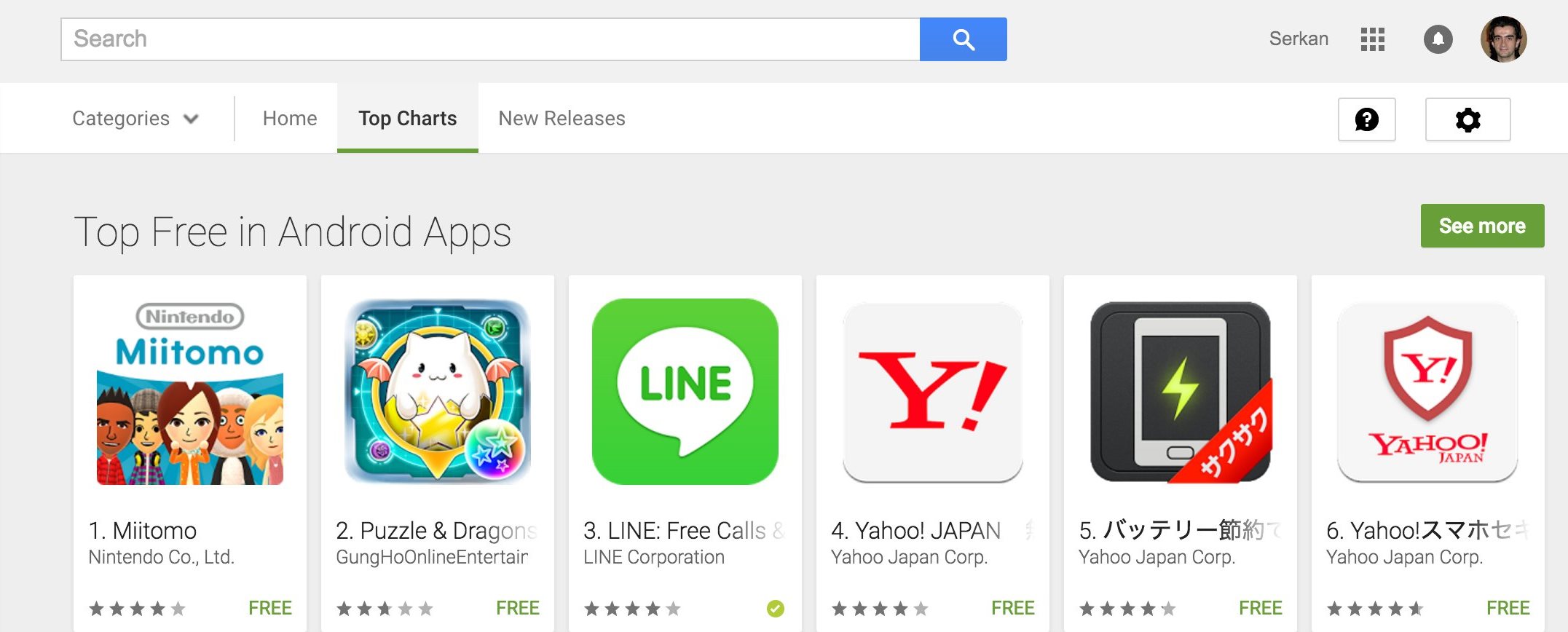 Japan: Miitomo is number one on the Android charts as the top free download