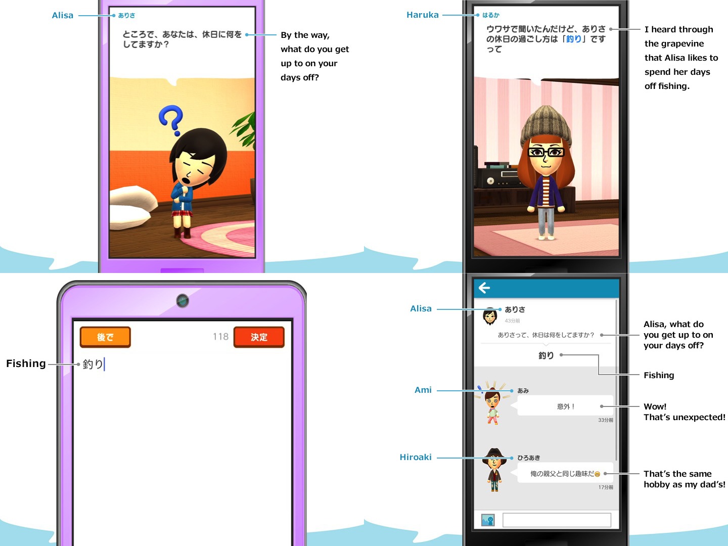 Looks like Miis go ahead and communicate with other Miis without your knowledge. This will help people who are hesitant to talk about themselves to communicate with others, and reveal a side of your friends you never knew, Mr. Kimishima says.