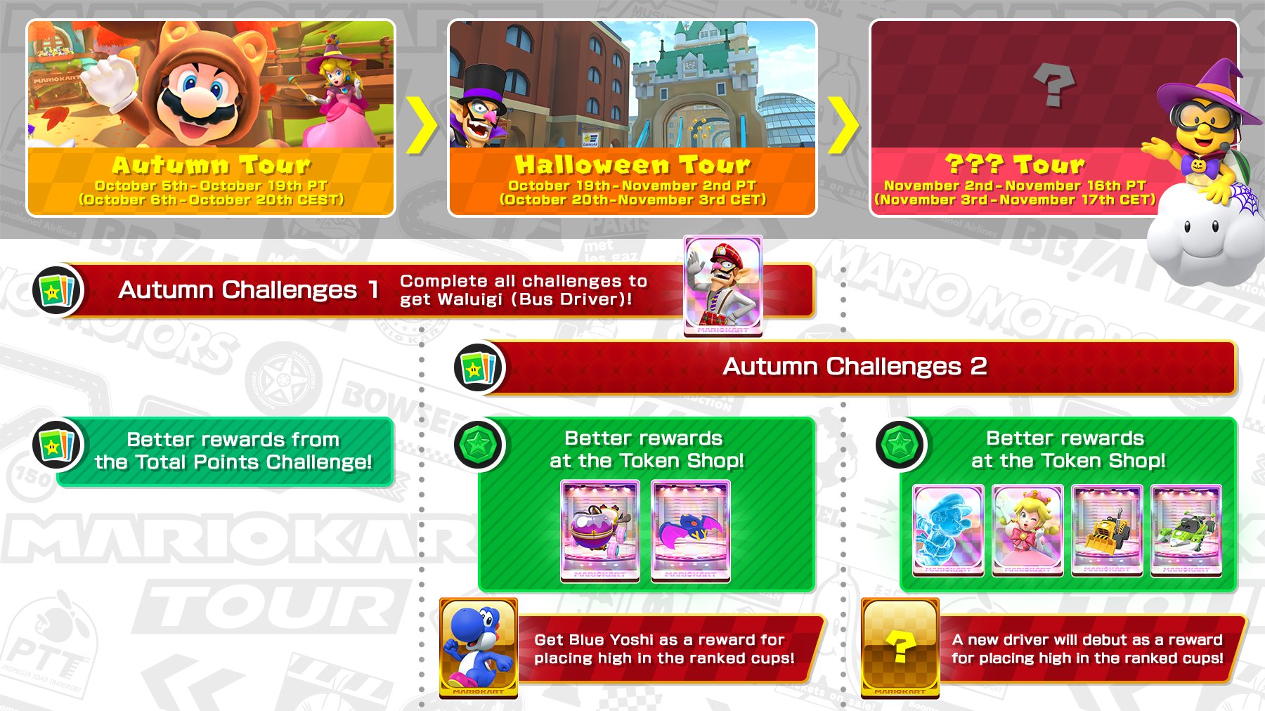 -Total Points Challenge: Better rewards at the Token Shop; Get Blue Yoshi as a reward for placing high in the ranked cups.