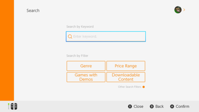 In the past, when visiting the search section of the eShop, it was mostly a blank page. Users were shown a search box, and that’s pretty much it. Now, however, specific filters are on the main page, including genre, price range, games with demos, and DLC.