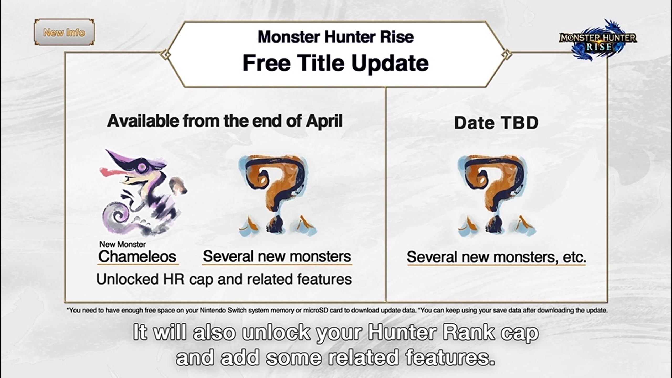 Players can look forward to the addition of more monsters, including Chameleos. The Hunter Rank cap will be unlocked as well while adding some related features.