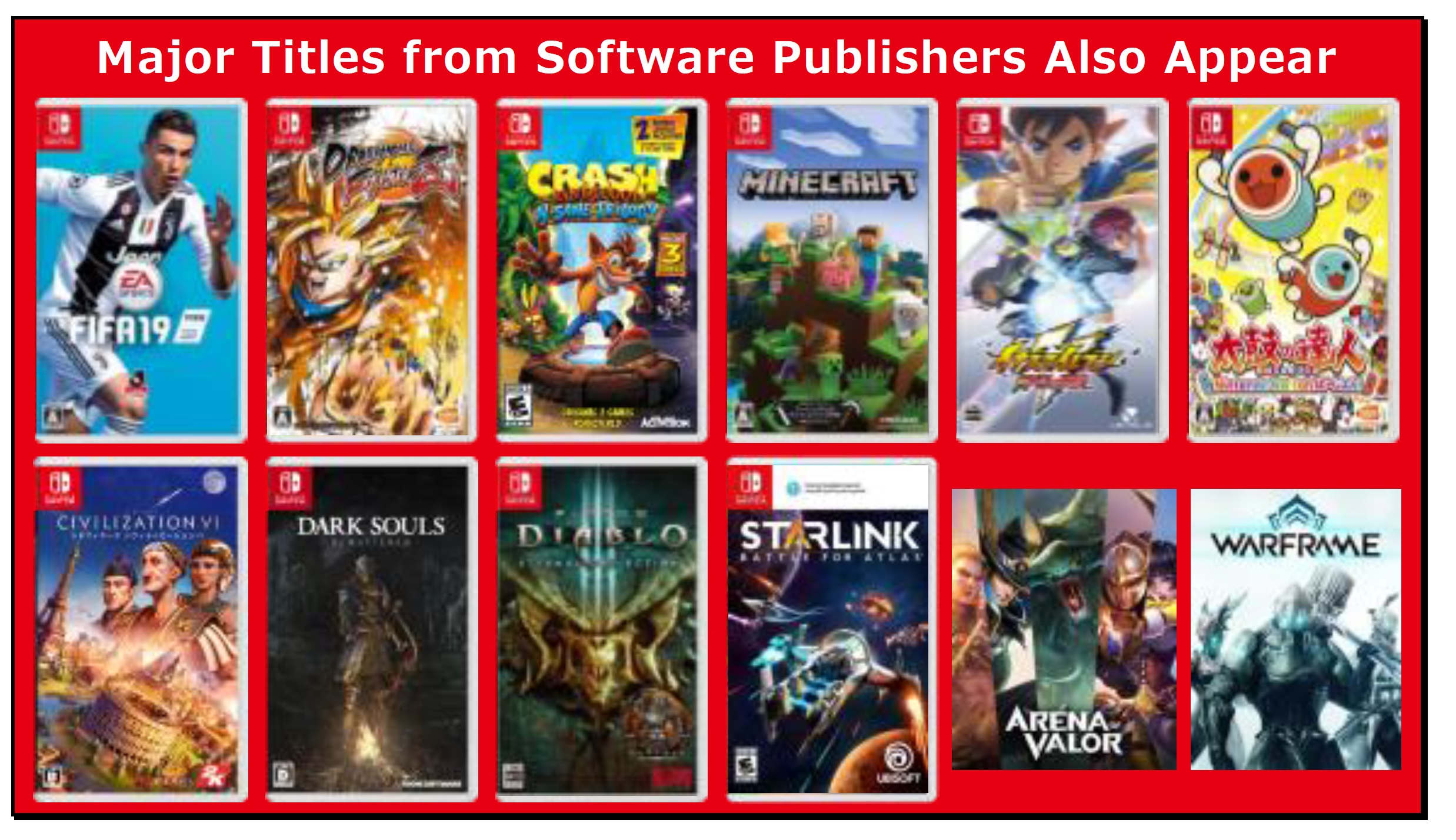 Over 500 software publishers selling software on Switch, over 1,300 titles