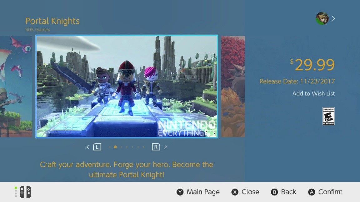 Portal Knights could be coming to Switch sooner than expected. If a listing on the eShop is to be believed, 505 Games will be publishing the title on November 23.