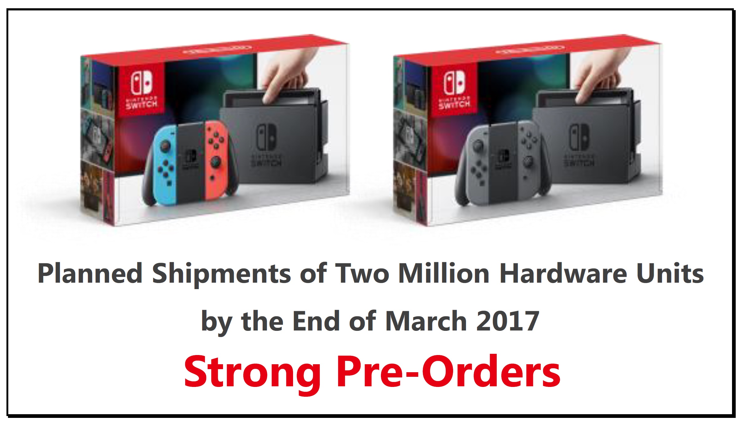 Our thinking in arranging the 2017 software lineup is that it is important to continue to provide new titles regularly without long gaps. This encourages consumers to continue actively playing the system, maintains buzz, and spurs continued sales momentum for Nintendo Switch.