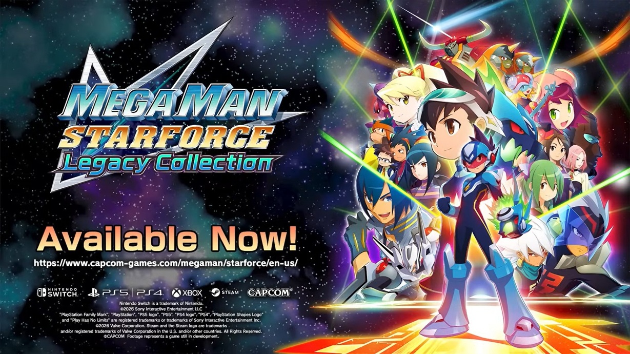 Capcom has issued a launch trailer for Mega Man Star Force Legacy Collection. The package includes Mega Man Star Force Pegasus, Mega Man Star Force Leo, Mega Man Star Force Dragon, Mega Man Star Force 2 Zerker x Ninja, Mega Man Star Force 2 Zerker x Saurian, Mega Man Star Force 3 Black Ace, and Mega Man Star Force 3 Red Joker. The DS games also have some new features.