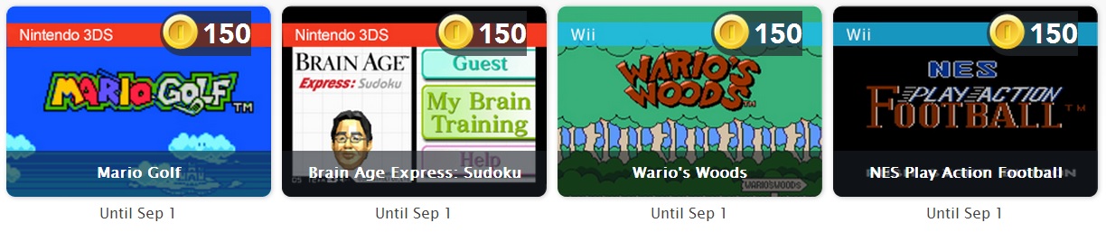 This month’s digital rewards on Club Nintendo have gone live. Members can choose from Mario Golf (3DS, 150 coins), Brain Age Express: Sudoku (3DS, 150 coins), Wario’s Woods (150 coins, Wii), and NES Play Action Football (Wii, 150 coins). These items last through September 1.