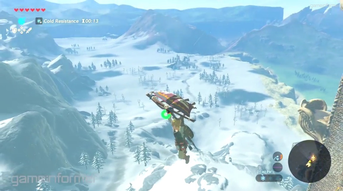 Original (2/13): Game Informer has posted a few minutes of new footage from The Legend of Zelda: Breath of the Wild. The clip shows snowy areas, more battles, riding horses, and Shrines.