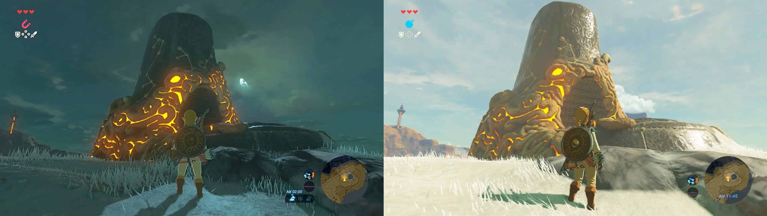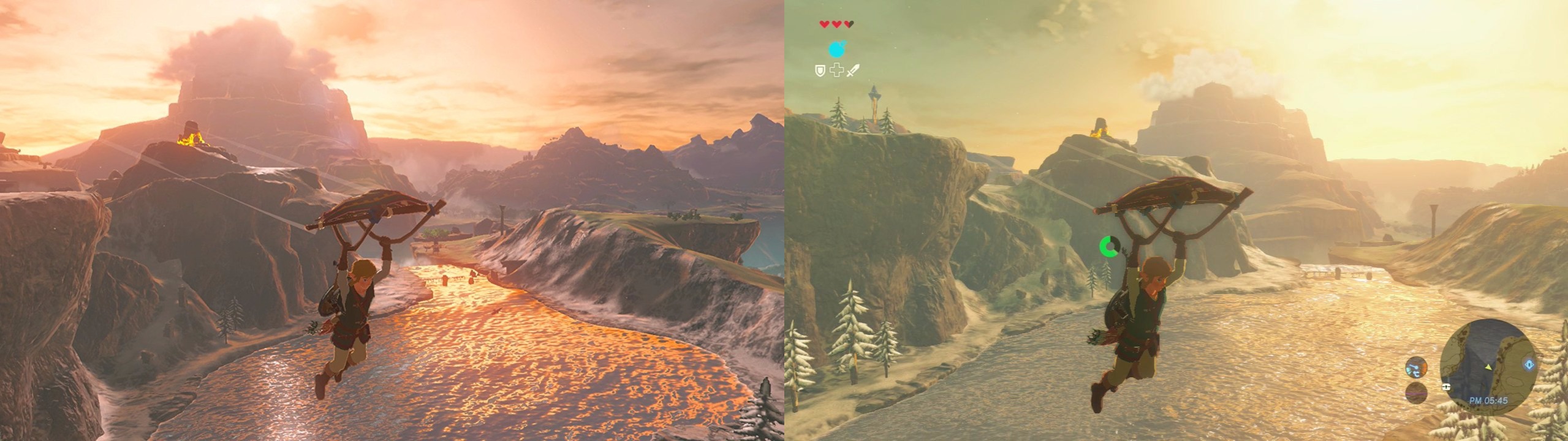 Here’s a look at how Zelda: Breath of the Wild compares on Switch and Wii U (from left to right):