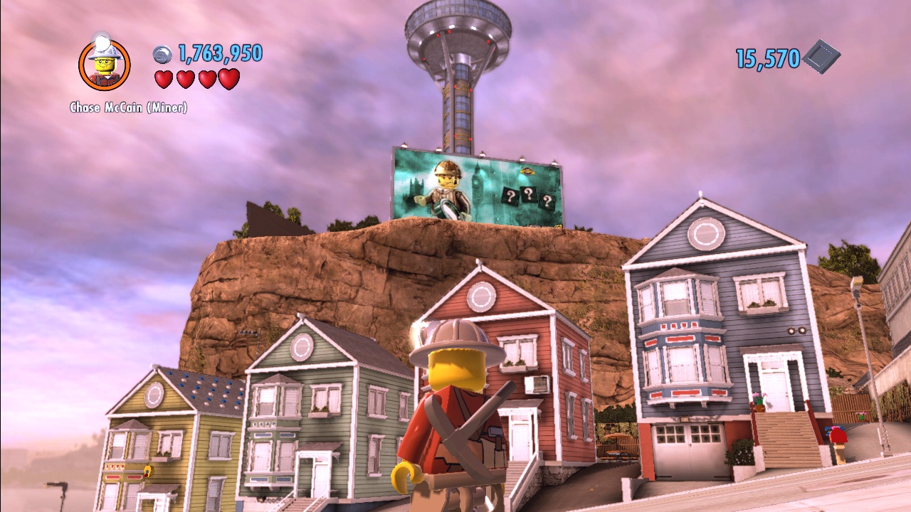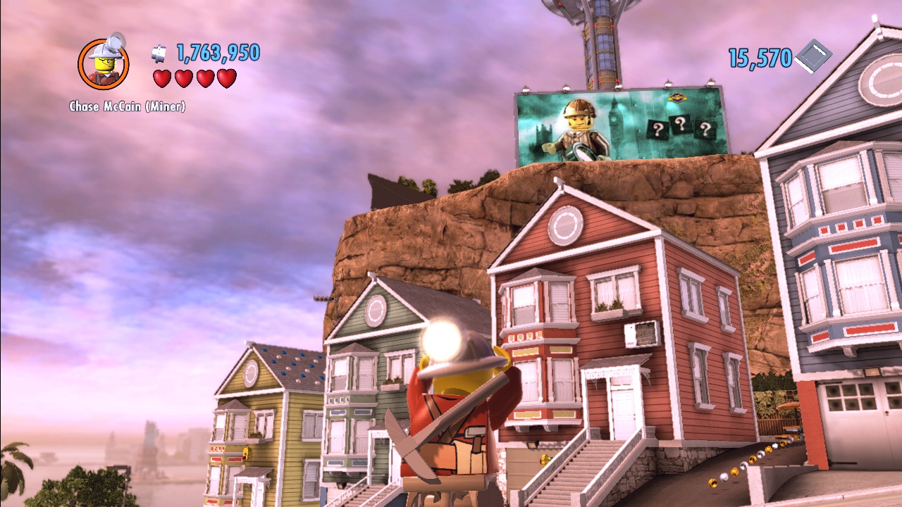 LEGO City’s other Sherlock Holmes’ reference is a bit more interesting. There’s a billboard placed in the overworld with a few “???” symbols and an object that seems to be a Warner logo.