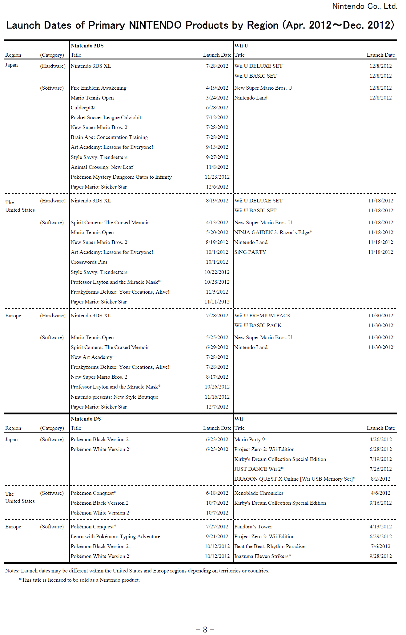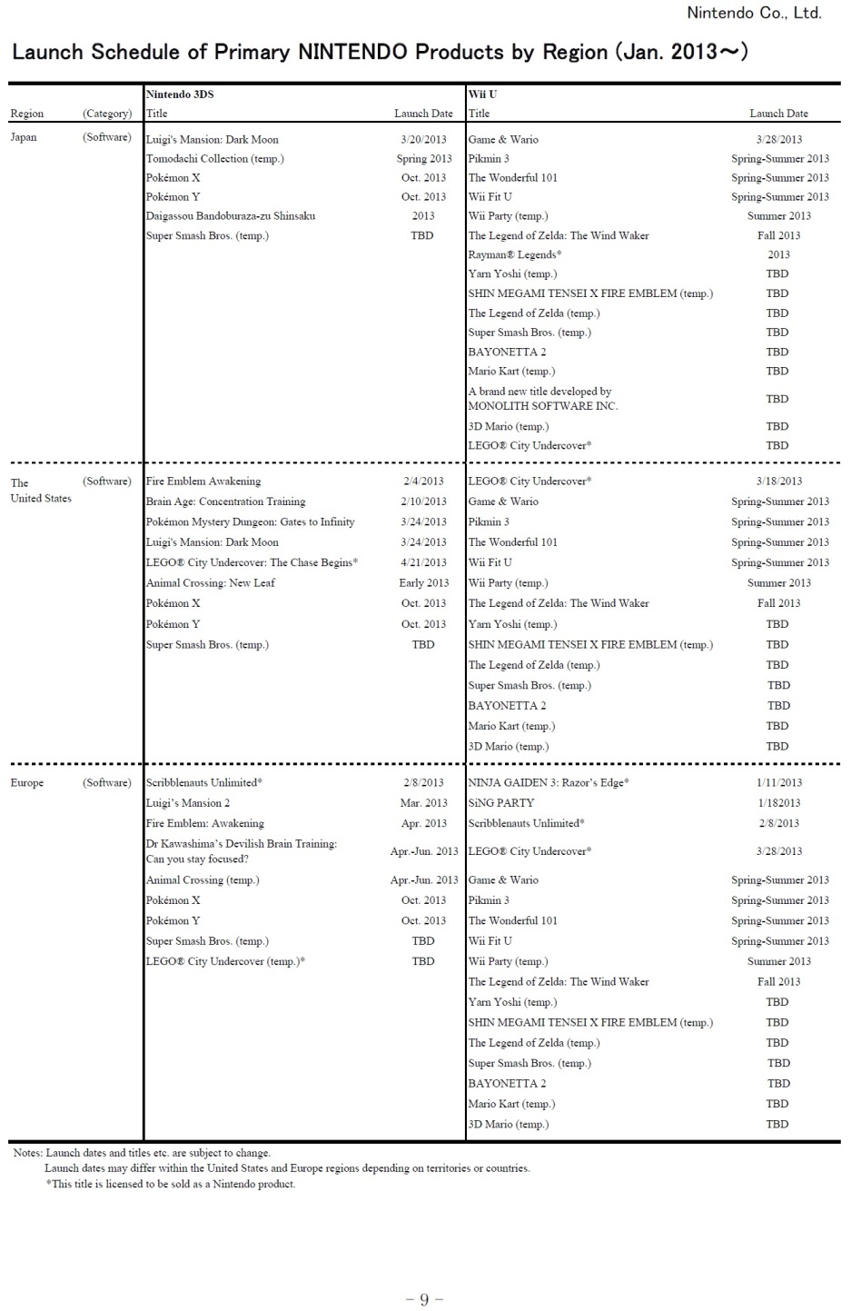 There are other interesting inclusions in the schedule. Nintendo lists the new Monolith Wii U game for Japan, but not North America and Europe. That’s rather strange. I have a feeling that Nintendo won’t be stingy with its localization like it was with Xenoblade, but the non-inclusion is peculiar.