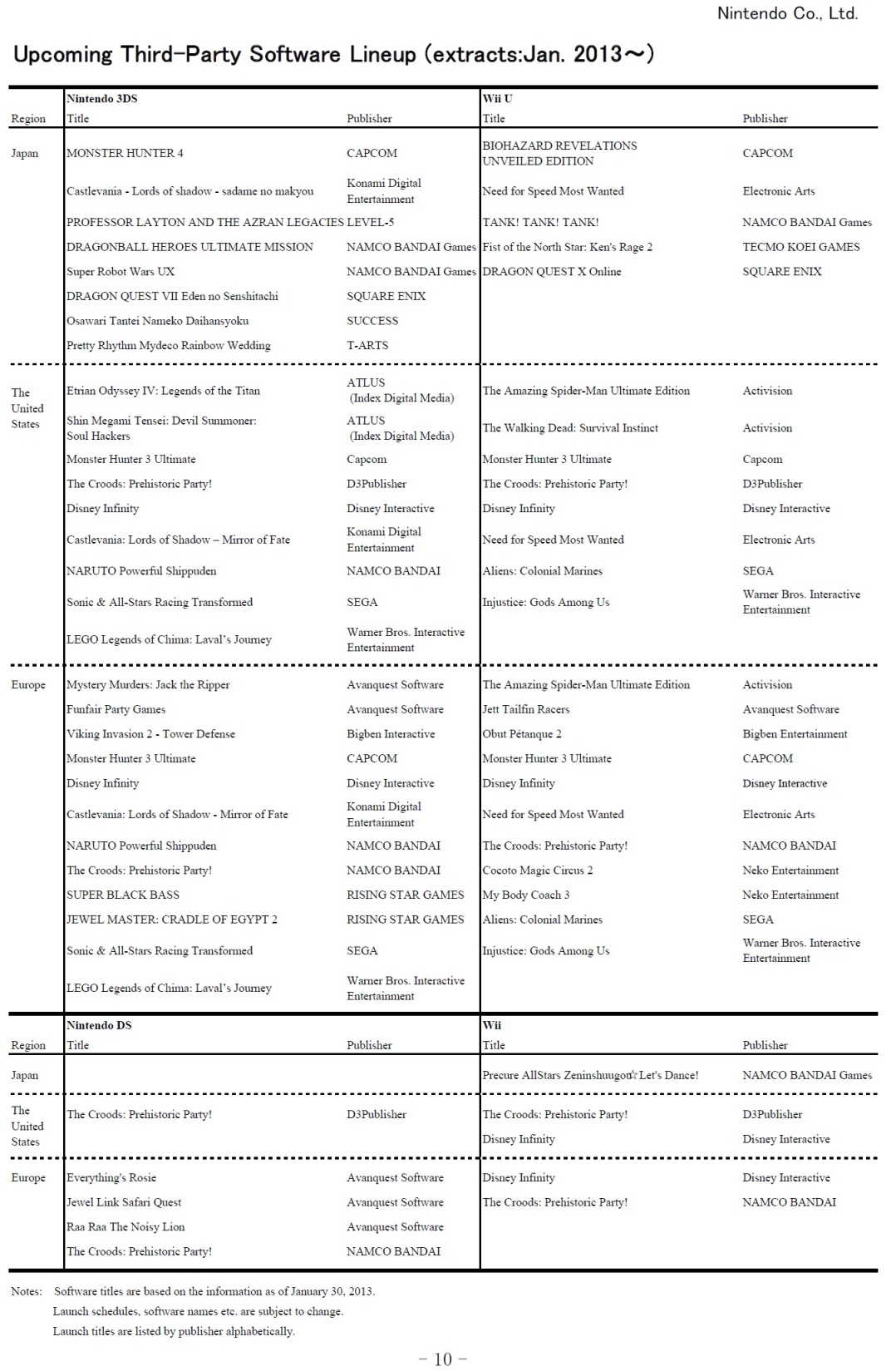 – 10 more titles coming from Nintendo