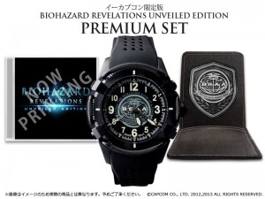 For 42,000 yen, fans can purchase a premium set. This includes a copy of Resident Evil: Revelations, an arranged soundtrack CD, BSAA card case, and a BSAA wristwatch made by US Agency. A deluxe case houses the watch, which features numbers that glow in the dark.