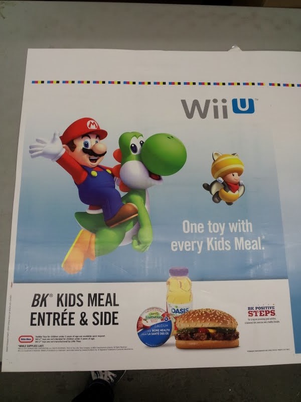 New advertisements promoting Nintendo’s Wii U partnership with Burger King have started to appear at fast food restaurant outlets. As expected, one toy will be included with every Kids Meal.