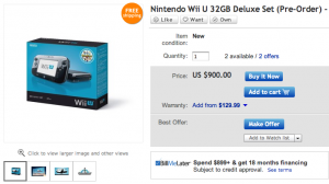 This is downright crazy. I’m not sure why anyone would be interested in this, even if pre-orders are starting to become more difficult to place. You’ll obviously ensure that you’ll be getting a Wii U, but $900 is simply outlandish.