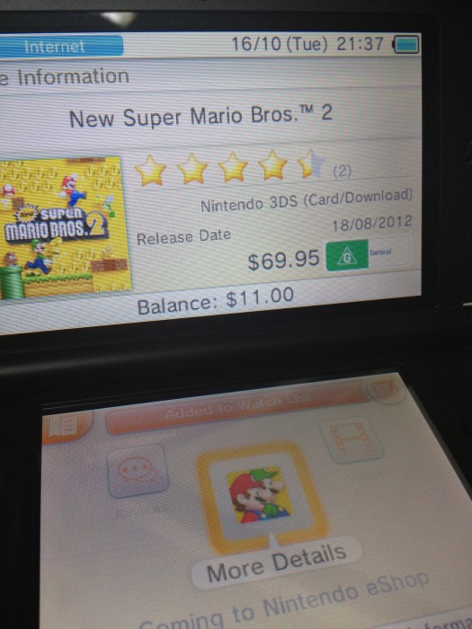New Super Mario Bros. 2 costs a heck of a lot on the Australian eShop. Pricing is set at $69.95 AU, which would be roughly $73.37 USD.