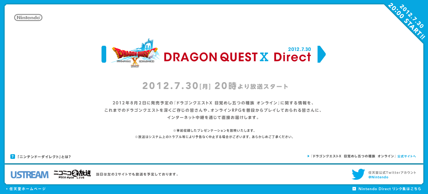 A Nintendo Direct dedicated entirely to Dragon Quest X will be shown on Monday. Satoru Iwata will be on hand to present information and gameplay for Square Enix’s anticipated RPG.