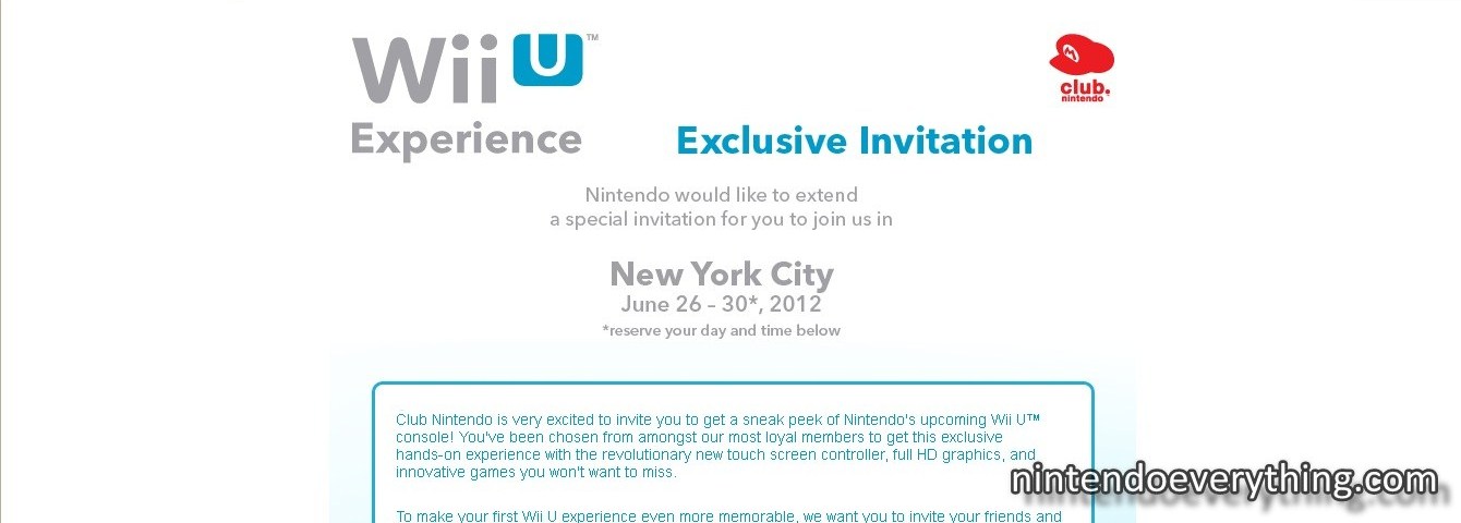 Are you a member of Club Nintendo? Then perhaps you’ve received an email containing an invitation to play Wii U.