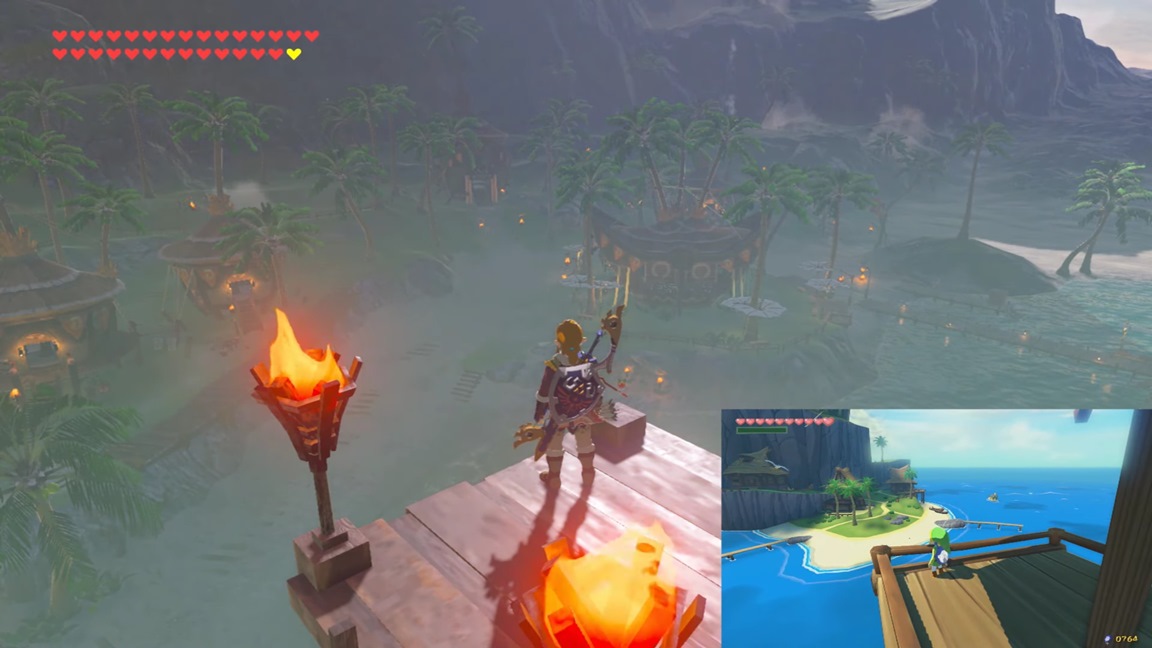 Over in Lurelin Village, players have started to notice that the layout is similar to Outset Island from The Wind Waker. You’ve got the big ladder with a watchtower similar to Aryll’s Lookout, buildings in similar locations, and more.