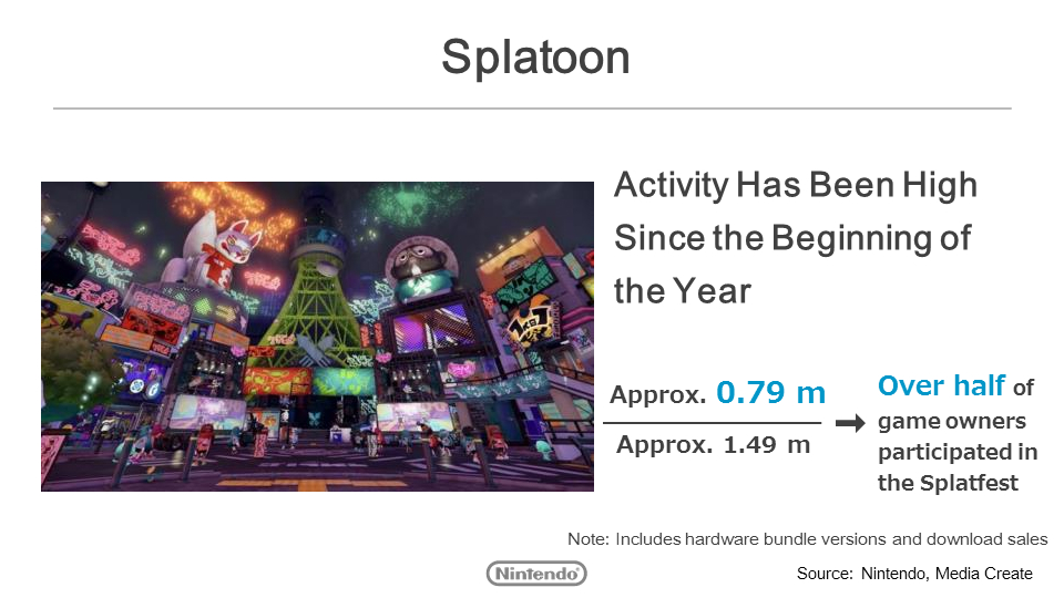 We have already expanded this IP beyond the game with a variety of products and events, and we will continue to take advantage of Splatoon’s massive popularity to support products and events and create tie-ins with external partners.