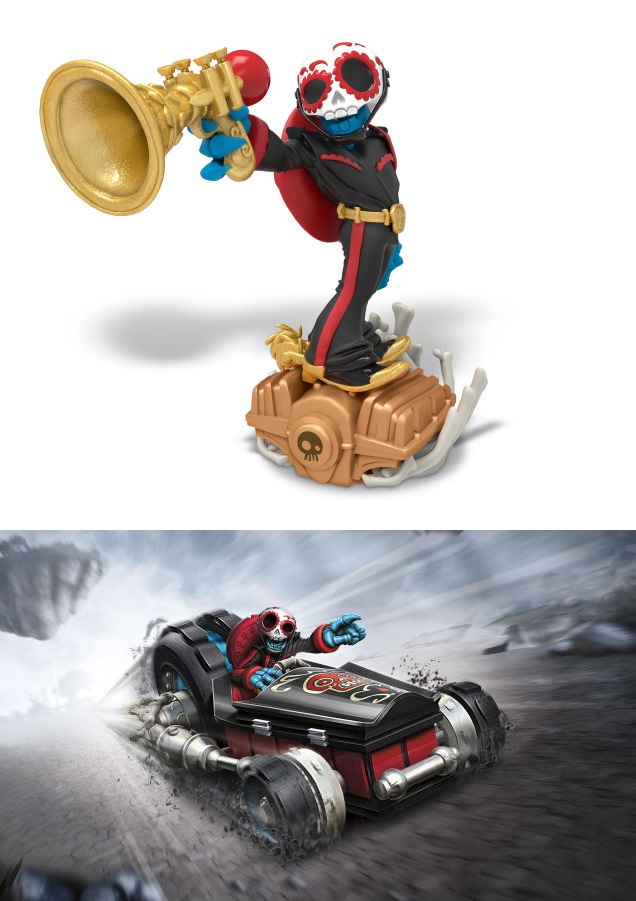 Despite being undead, Fiesta had always been the life of the party. He was once the head member of a popular mariachi band in the personal court of Count Moneybone, who all undead citizens respected immensely. In his spare time, Fiesta and his bandmates played music for all of the new arrivals that entered the Underworld. However, a day came when the new arrivals were actually several Skylanders, who had come on a mission to stop Count Moneybone from unleashing a robot army on all of Skylands. Fiesta then realized that he, like so many others, had been fooled by the evil Count into thinking he was kind and generous – not the vengeful monster he truly was. Unbeknownst to the Skylanders, Fiesta and his bandmates helped to distract the robot army so they could infiltrate Moneybone’s mansion and put a stop to him. Even though the Skylanders were unaware, this act of bravery and defiance did catch the attention of Master Eon, who recruited him at once.