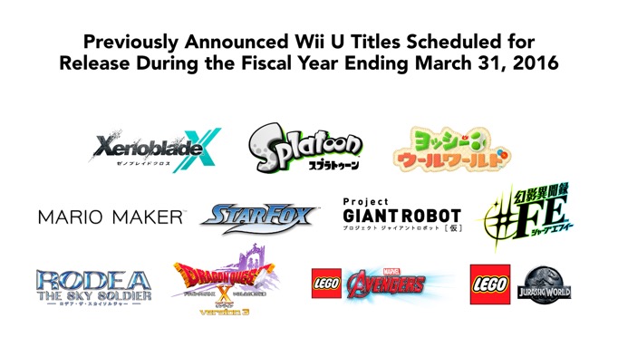 Nintendo included a slide in its latest financial results briefing that provides a look at upcoming titles for Wii U. Take a look at the image above.