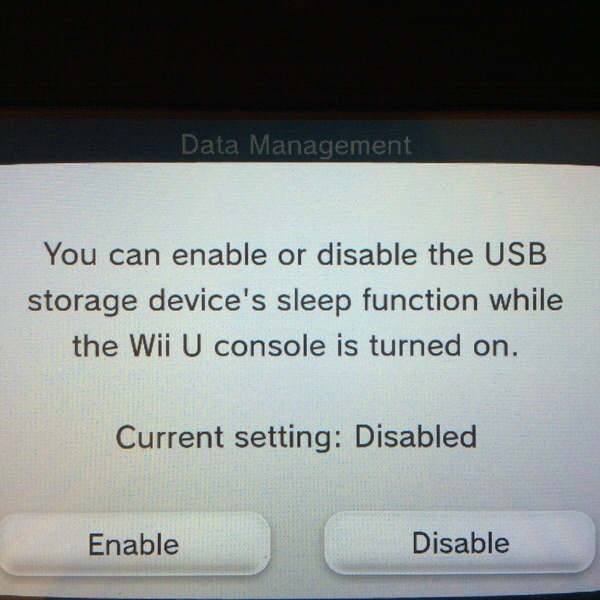 Wii U setting makes it possible to disable sleep mode with external hard drive