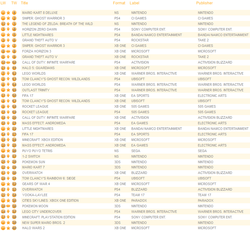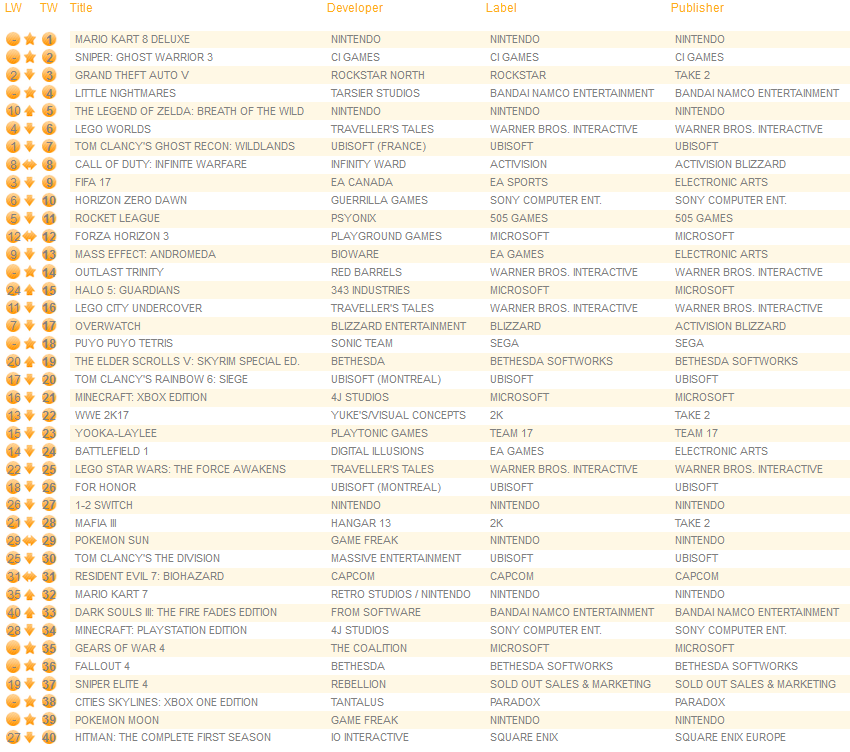 UK software sales (Week ending 04/29/2017) – Switch/Wii U/3DS charts