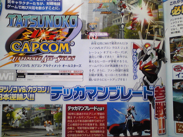 New characters from Tatsunoko vs. Capcom: Ultimate All-Stars were supposed to be unveiled at TGS, but one of those characters has already been announced in this week’s Famitsu. Tekkaman Blade (D-Boy), a star of an old anime show, will be making an appearance in the game. Now you may be wondering, why would Famitsu make this type of reveal? Well, Ultimate All-Stars (the localized version of Tatsunoko vs. Capcom for North America) will be heading to Japan and it’s confirmed to support online play. The title will be out this winter.