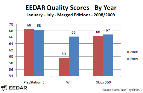 It may not seem like there has been a huge jump in the overall average compared to last year, but now the system is right around where the quality of PS3/360 games stand. Titles such as MadWorld, House of the Dead: Overkill, Punch-Out!!, and even Wii Sports Resort have contributed to the increase in review scores. And 2009 isn’t over yet – We still have Resident Evil: The Darkside Chronicles, Silent Hill: Shattered Memories, and New Super Mario Bros. Wii to look forward to, which will boost this year’s number even further.