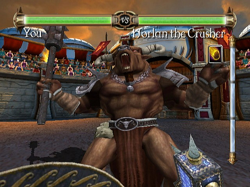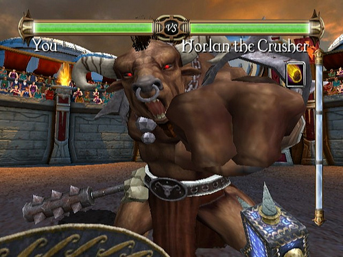 Rage of the Gladiator is a fantasy fighting game. You control a gladiator, fighting for your life in an arena. Armed with your magical warhammer and a trusty shield, you must defeat fantastic bosses including a Chimera, Beholder, and a Dragon. The game is set in first-person perspective.