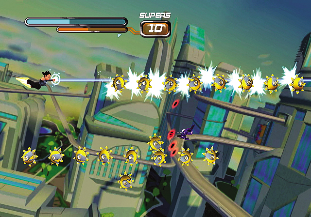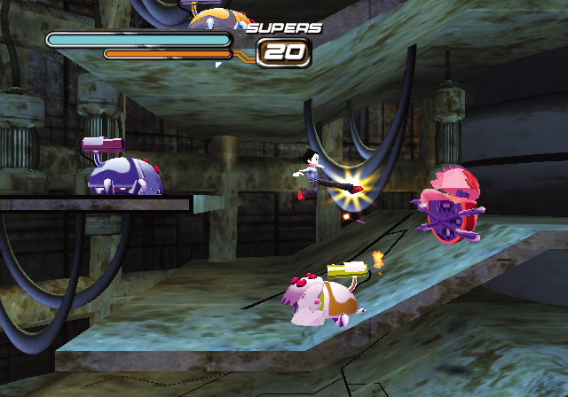 With visuals drawn and scanned in from several different art mediums such as pen & ink, acrylic paint and charcoal, Eduardo sports an untraditional aesthetic design for a videogame. Jump, shoot, whip, drive, fly and throw your way through hordes of Peking Opera pastries, spear toting carrots, robotic mangos, and more. Play with friends as you learn to cooperate effectively, or be annoying by throwing each other around the screen and attacking one another.