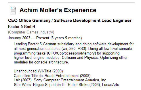 The last time we heard rumblings regarding Factor 5, rumors surfaced that the team was working on two Wii titles. According to the image above (which comes from Achim Moller), at least one project could be shaping up for a release this year.
