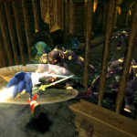 – You can perform defensive, as well as evasive moves, at the cost of a depleting soul gauge. When the gauge reachs zero, your weapon breaks, considerably reducing your attack power (you’ll then have to switch your sword).
