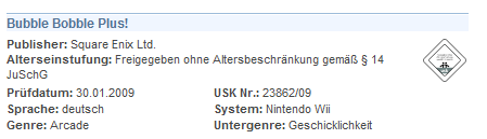 Not only has the USK rated the game, but Bubble Bobble Plus (localized title) has a worldwide ranking menu which is a good indication that it will see a worldwide release.